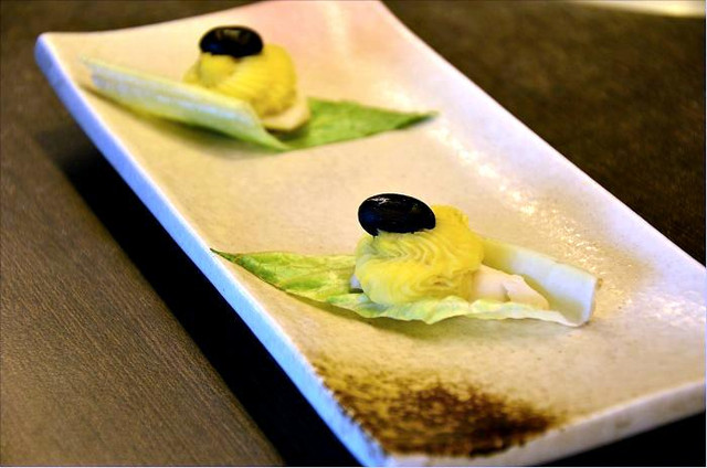 屬於比較粉嫩的粉肝,也已事先調過味道,稍甜,但沒什麼豬肝的腥味,