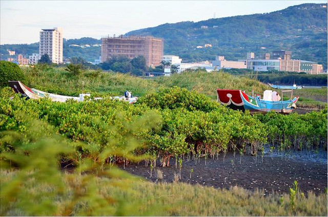 除了招潮蟹之外,還可以看到水筆仔的生態,更有許多漁船停著,