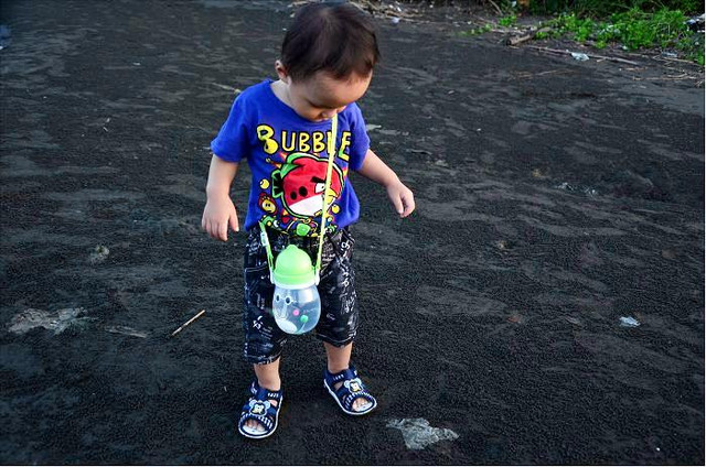 小米咕竟然想要撿地上的東西來餵食招潮蟹,這小腦袋瓜裡,到底裝了些什麼啊?