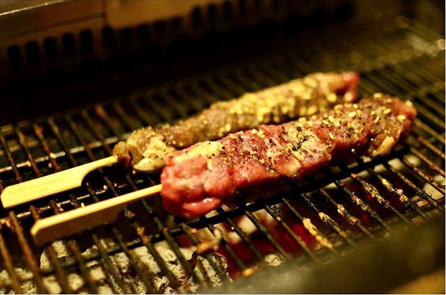 牛肉串,這個比較厚,所以比較沒那麼好烤,比較需要一點烤肉的功夫哦~