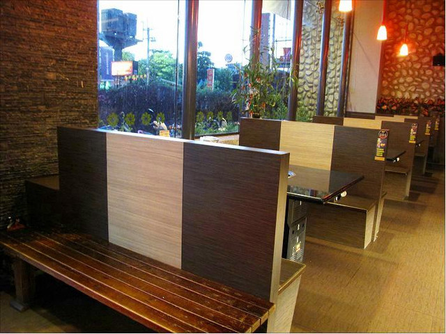 店內空間寬敞,高椅背,桌與桌之間不會有尷尬的比鄰感,這點設計挺好。
