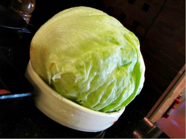 這一球是生菜,用來包著肉一起吃的,但生菜非常非常的大片,會讓人不知從何下手啊。
