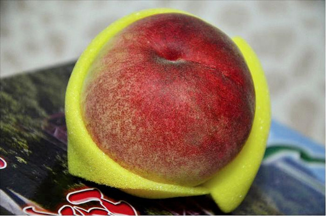 水蜜桃很貴耶,也是很嬌嫩的水果,輕輕一碰就會受傷的,所以要格外的小心。